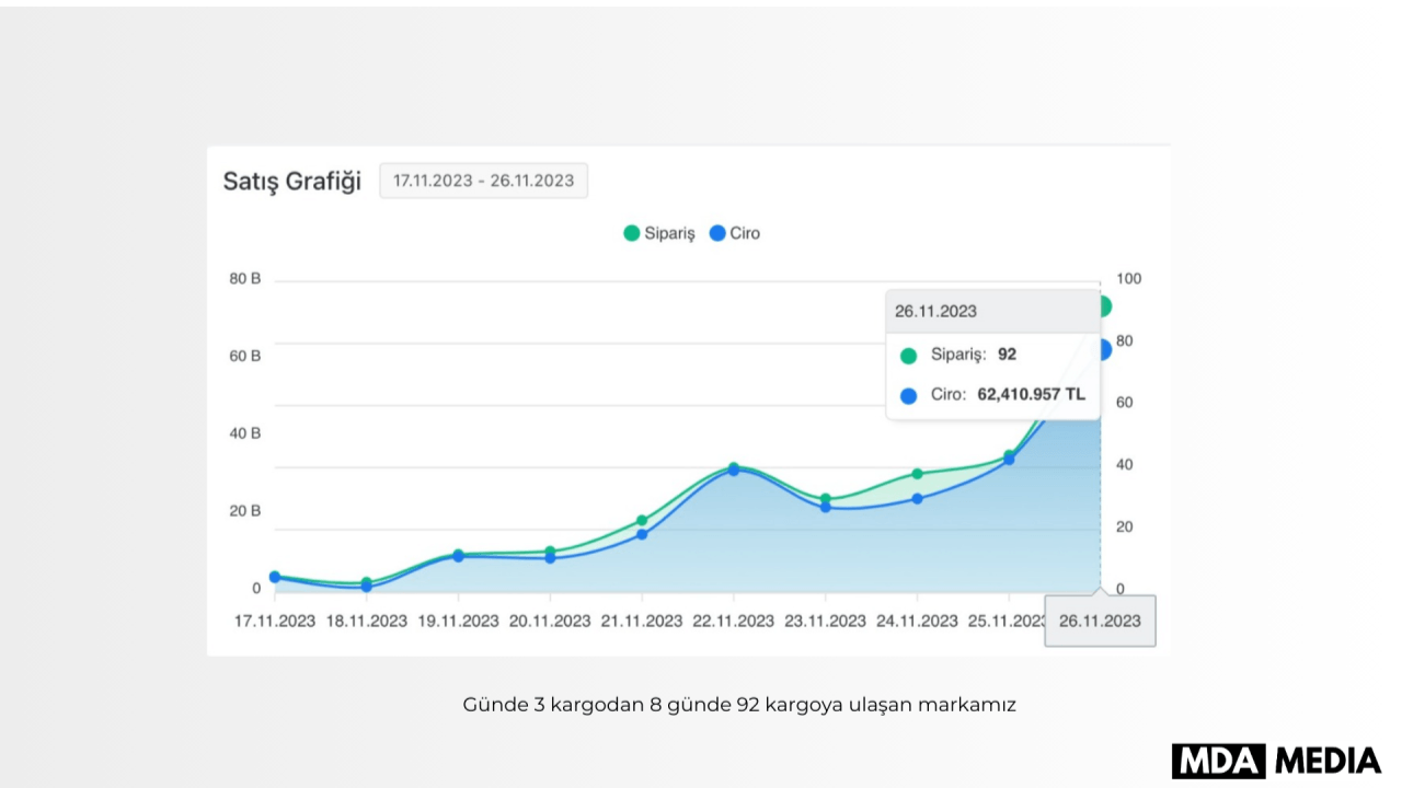 MDA Media ile çalışmaya başladıktan sonra reklam getirimiz (ROAS) 1 ayda 4 katına çıktı. Artık stoğumuzu yönetmekte zorlanıyoruz.
